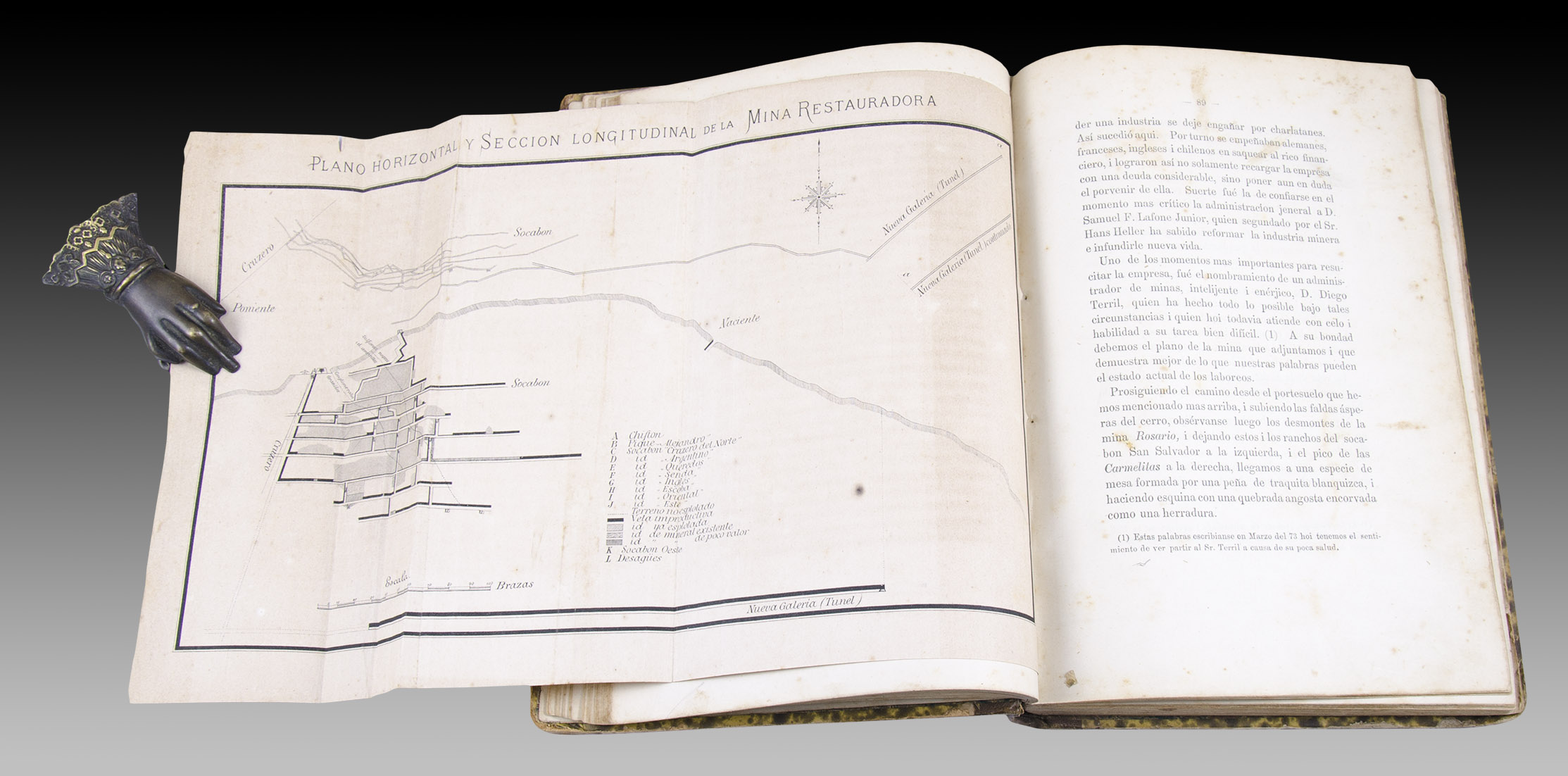 En 4º (25,9 x 18 cm), 432 pp., (incluye Anteportada y Portada), + 1 pp., con fe de erratas, y 1 plano, más 4 láminas. Encuadernación con lomo de cuero y títulos dorados. Ejemplar con una dedicatoria fechada en 1881.