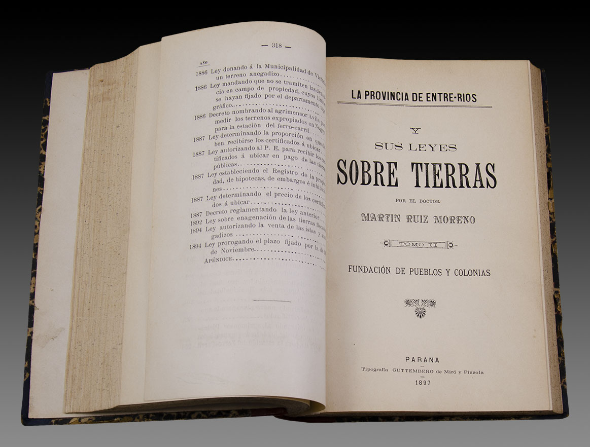 La Provincia de Entre Ríos. Sus leyes sobre tierras. Imp. Guttemberg. Paraná. 1896