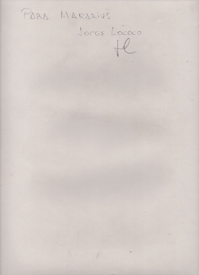 A su regreso a Buenos Aires y luego de realizar una impecable copia a la gelatina de plata en gran formato, Jorge Lococo obsequia y dedica de puño y letra esta artística obra fotográfica a su maestro y amigo Sameer Makarius.