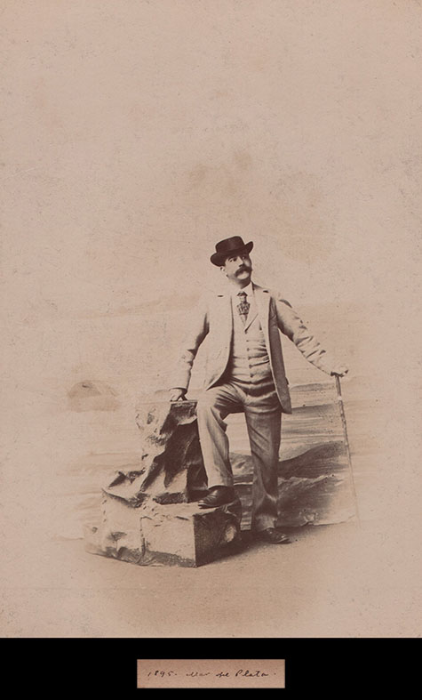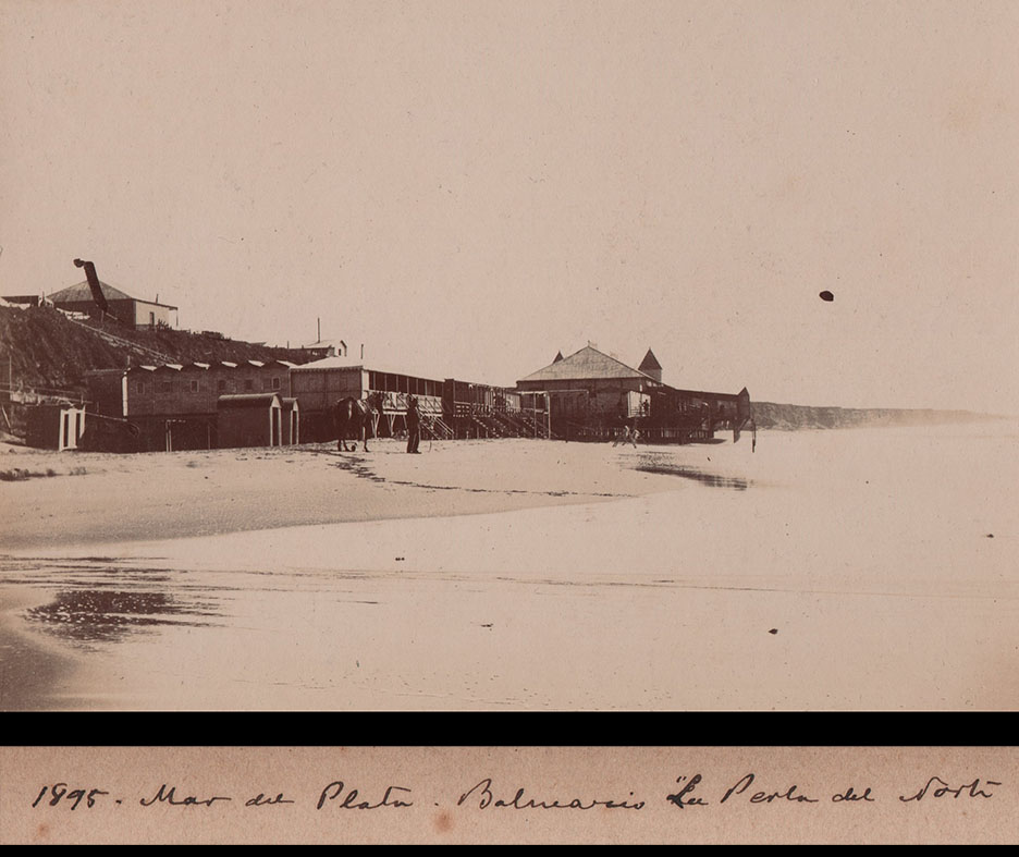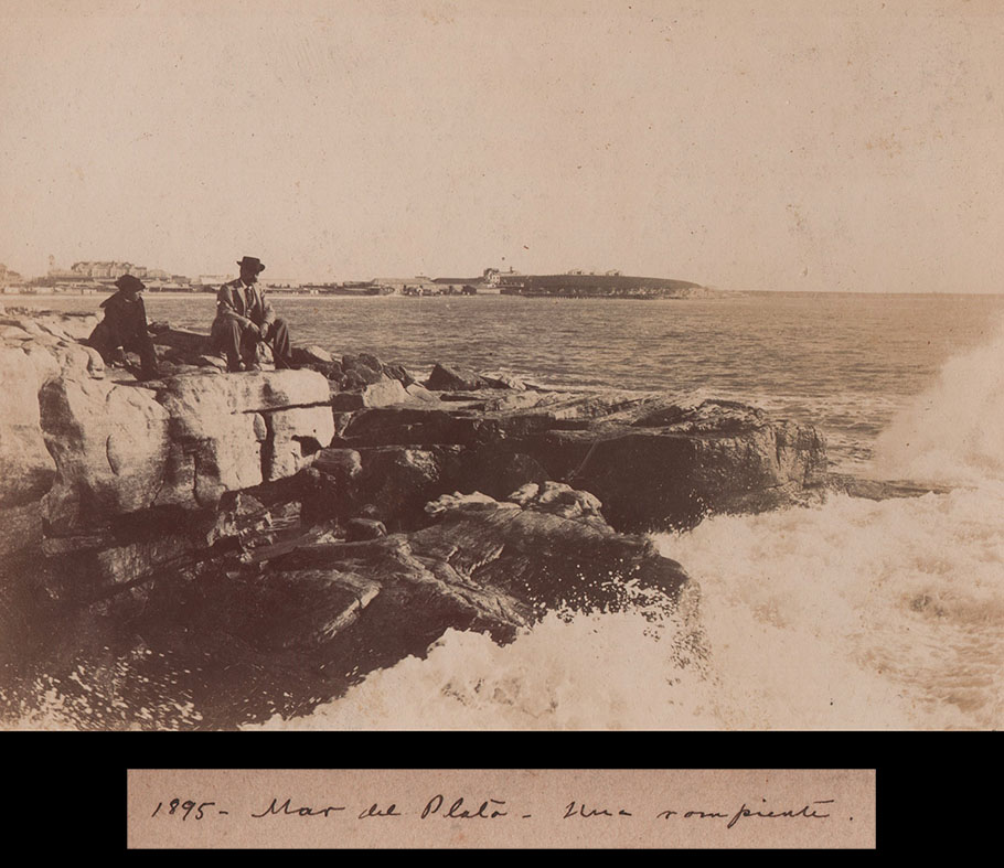 Tempranos registros de las recién nacidas Mar del Plata, fundada en 1874 por Patricio Peralta Ramos y Necochea, fundada por Dardo Rocha en 1881. El conjunto posee trece vistas de Mar del Plata, cinco de Necochea y su río Quequén, y dos retratos de estudio, uno de un caballero, y otro de conjunto, con tres hombres y un muchacho, ambas tomas delante de un telón pintado con una playa con olas, y con una “falsa piedra” de cartapesta. Retratos, probablemente del propietario de estas fotografías.