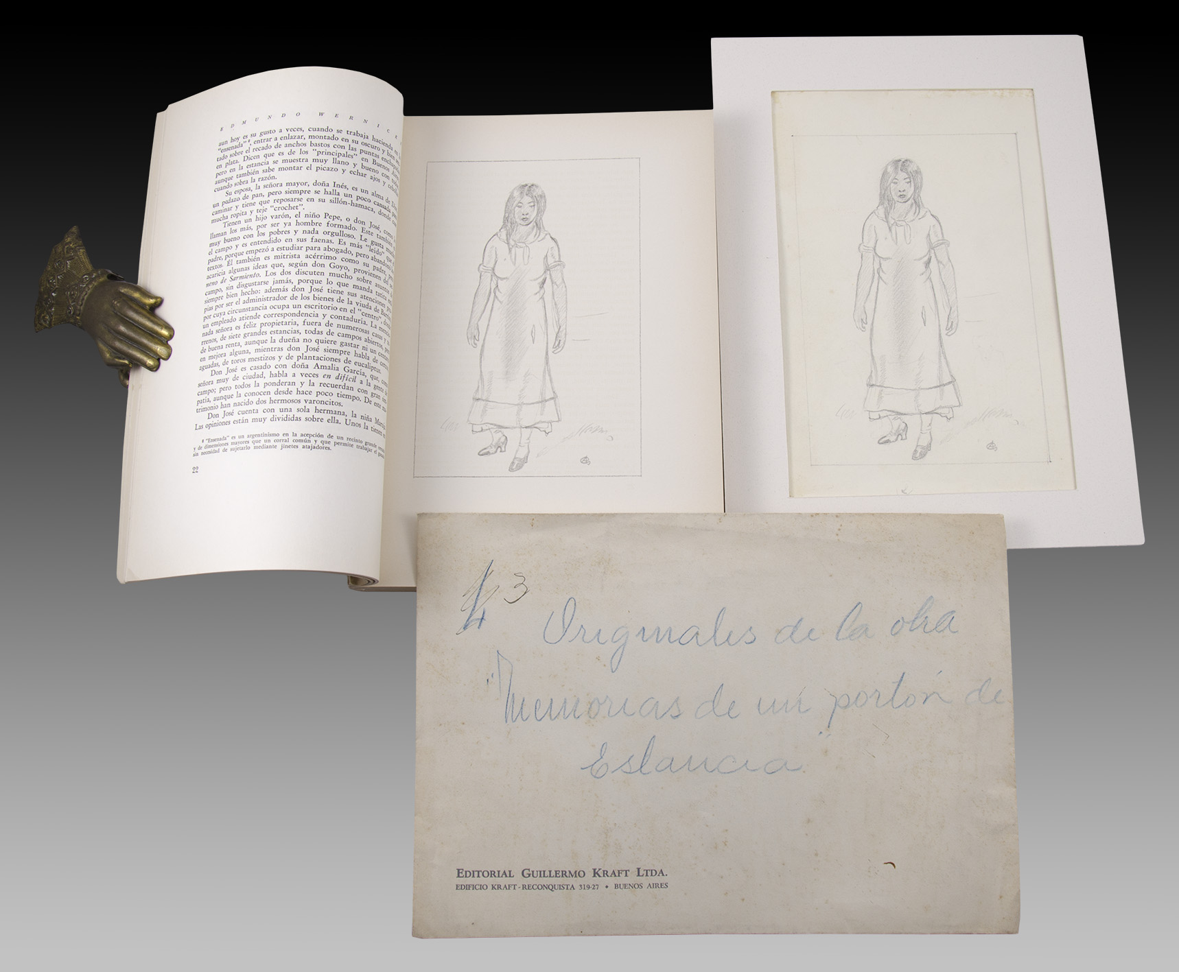 Con un dibujo original de Alberto Güiraldes en grafito, firmado, que aparece reproducido en la obra frente a la página 22. En 4° (26 x 19 cm), 238 pp., incluye Anteportada, Frontis y Portada, 1 h. en bl., + 1 h., con el colofón. Ejemplar encuadernado -preservando la cubierta y el lomo de editor-, pero falto de sus tapas.
