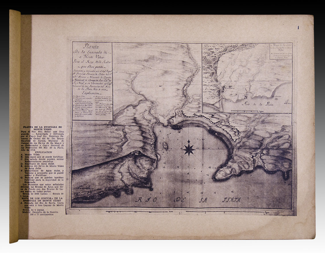 Su evolución vista a través de Mapas y Planos españoles. Tomados en copia directa de los originales existentes en los archivos de España, por el doctor Carlos Travieso. Impreso en Montevideo. 1937.