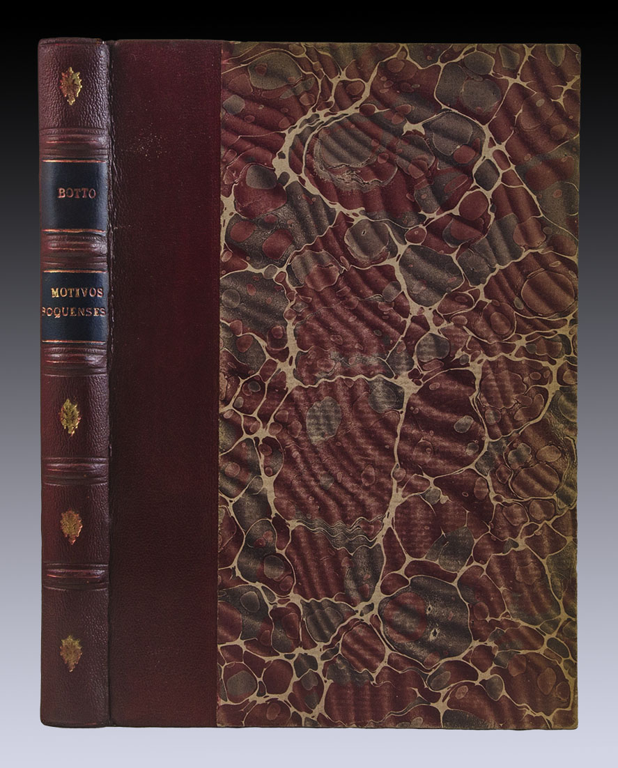 In 4°, (23 cm x 15,5 cm), Caratulas Originales, 132 pp., (incluye Anteportada con una dedicatoria, Portada, v. en bl.) Encuadernación en pasta española, lomo en cuero con títulos dorados.