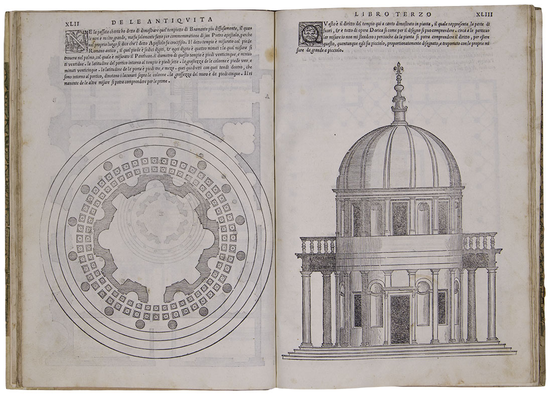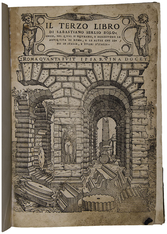 Il terzo Libro di Sabastiano Serlio Bolognese, nel qual si figvrano, e descrivono le antiqvita di Roma, e le Altre che so, no in Italia, e fvori d´Italia. (En el colofón: Impresso in Venecia per Francesco Marcelino da Forli. MDXXXX. Del mese di Marzo.) 1540.