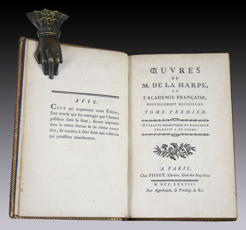 Oeuvres de (...) de L´Académie Francaise, Nouvellement Recueillies. A Paris, Chez Pissot, LIbraire, Quai des Augustins. 1778.