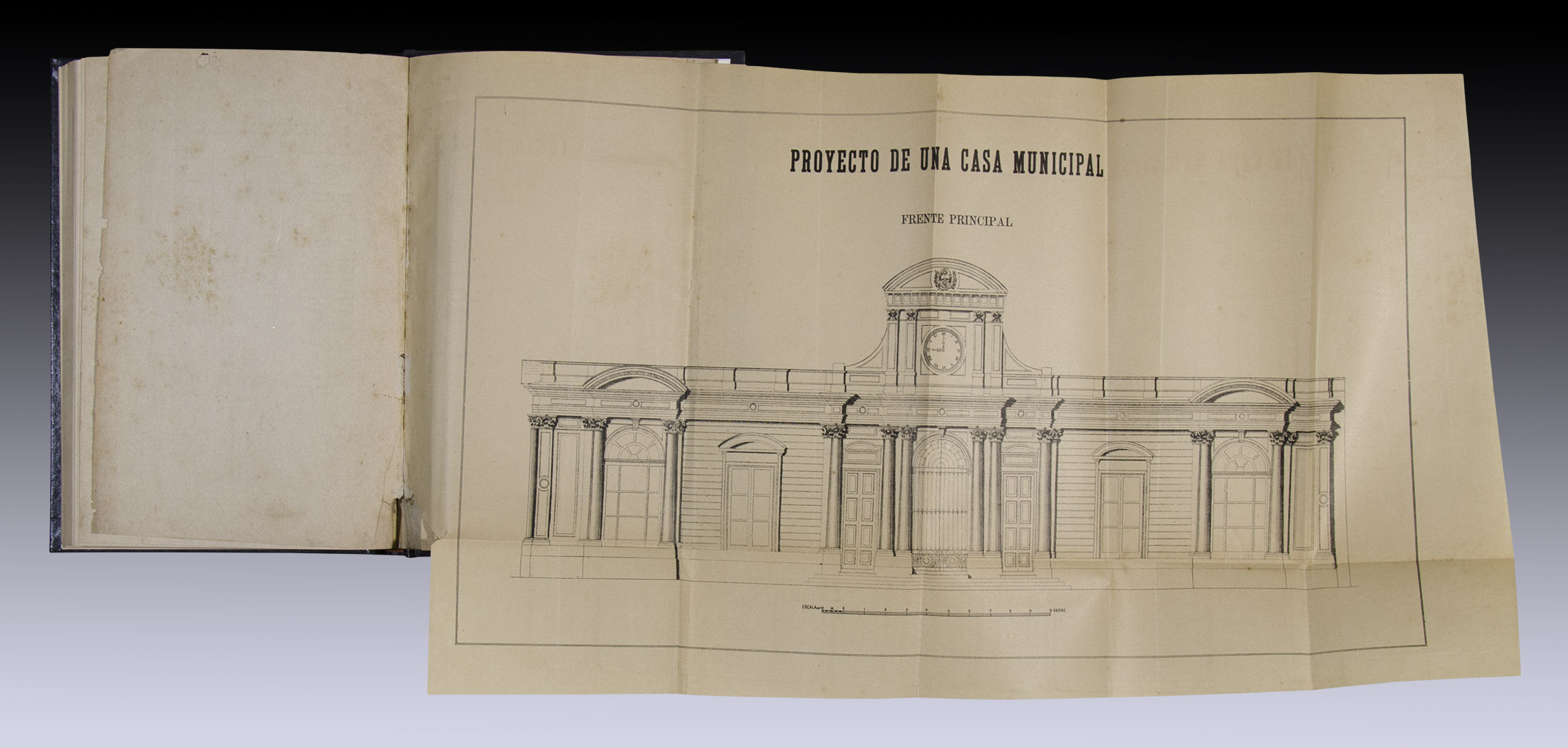 En 4° (24 x 17 cm), 179 pp., + tres planos plegados de la ciudad, y la planta y fachada de la Municipalidad. Encuadernación moderna en plena tela preservando las cubiertas originales.