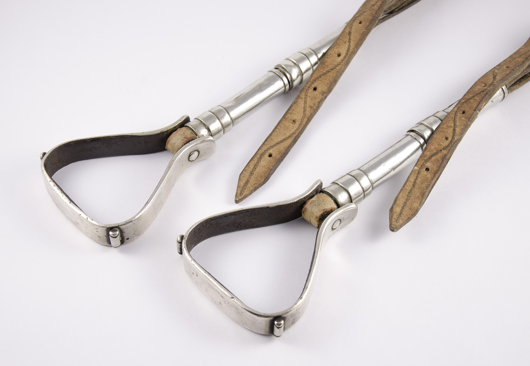Medidas. Estribos. Alto: 13,3 cm. Abertura: 9,5 cm. Estriberas. Largo de cada par de cañas: 19,5 cm.