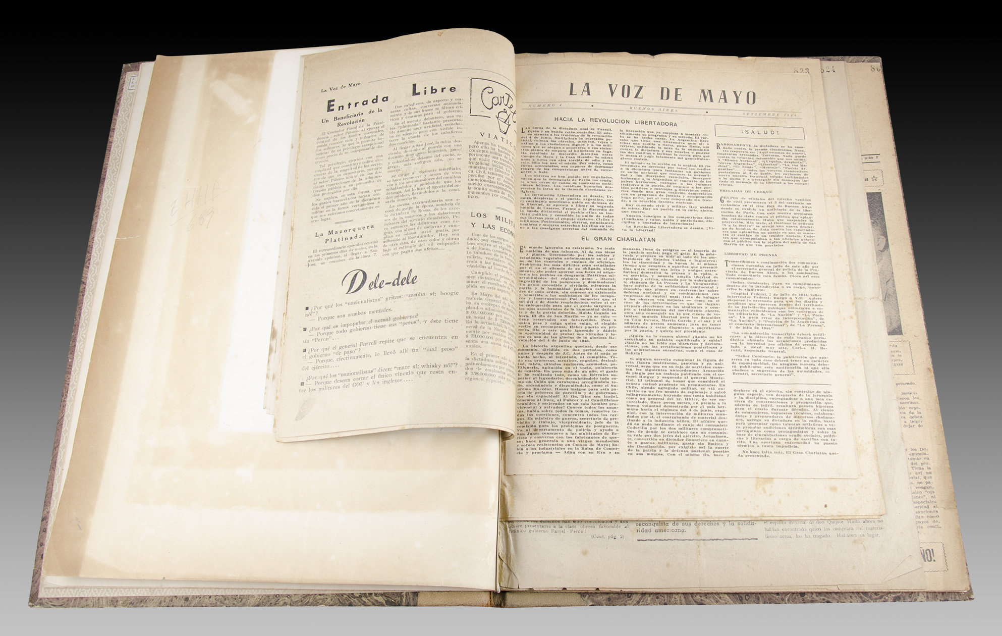 La Voz de Mayo. Número 4. Buenos Aires. Setiembre 1944: 2 hojas. “Hacia la revolución libertadora. Las horas de la dictadura nazi de Farrell, Perón y su banda están contadas. El miedo atenaza a los traidores de la revolución del 4 de junio”.