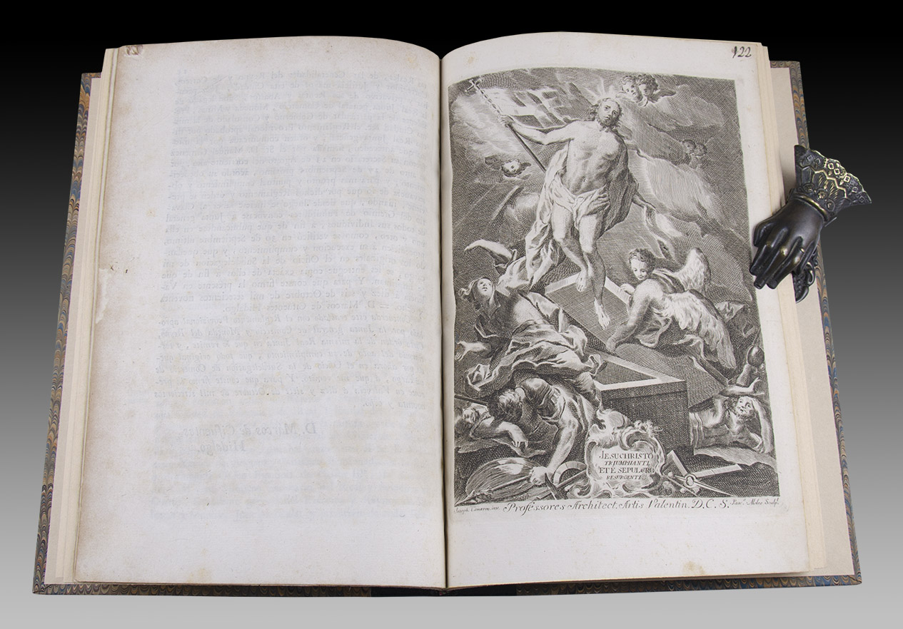 In 4º, Portada orlada con escudo real, v. en bl., 15 h., con un grabado de los “Profesores escultores”. Encuadernación moderna en pasta española, lomo de cuero con títulos dorados. Ejemplar en buen estado