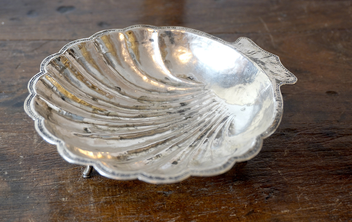 Muy poco frecuente en las colecciones estudiadas. Bandeja republicana en forma de shell o concha marina -formada por ondas que se expanden de modo radial-, también llamada venera, en cuyo perímetro lleva una guarda de pequeños y sucesivos círculos. Apoya sobre tres patas. La obra reúne las técnicas de batido, repujado, cincelado y fundido.