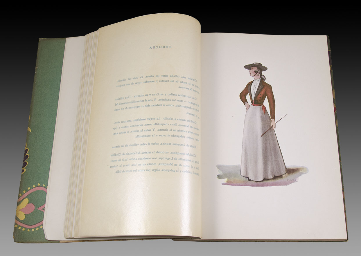 Con comentarios de Agustín de Foxá, dibujos de V. Viudes y grabados de Heber. La colección le fue obsequiada a Evita por las cincuenta provincias españolas que en gratitud al gesto de Argentina tras la Segunda Guerra Mundial, seleccionó un fiel ejemplo de cada traje regional para componer esta maravillosa colección que hoy se conserva en el Museo Enrique Larreta, de Buenos Aires.