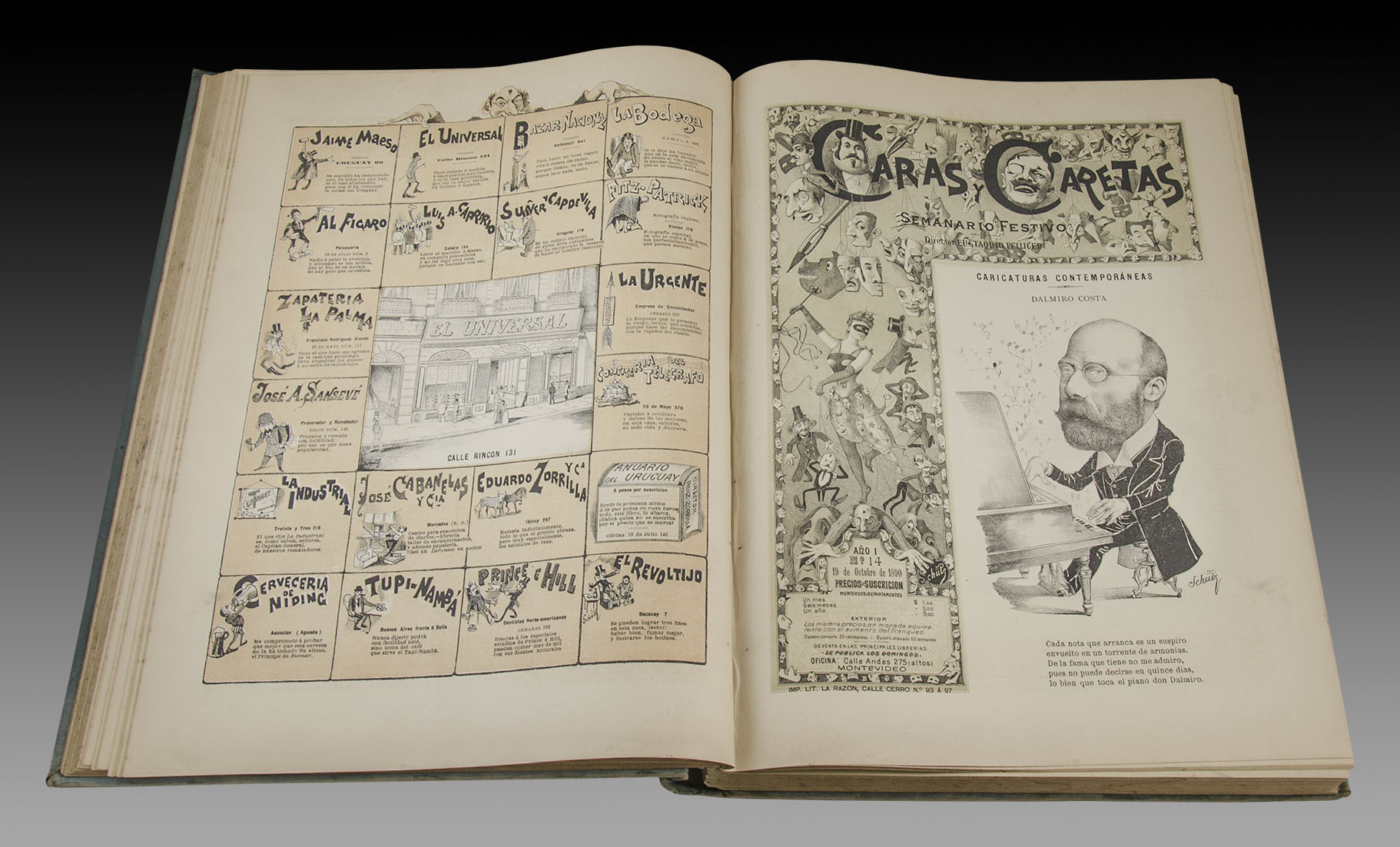 Revista fundamental en la vida rioplatense, nació en Montevideo fundada por quien sería su director, Eustaquio Pellicer, a quien lo acompañó en esta etapa uruguaya, el dibujante y caricaturista Charles Schültz. A partir del número 72 -el último aquí ofrecido-, Schültz será su propietario y Arturo Giménez Pastor, su director. Advertimos que la versión montevideana de esta publicación se extendió a lo largo de 153 números -hasta febrero de 1892-, con muy buenas ventas en el Uruguay y también, en Buenos Aires. En esta ciudad, y a partir de 1898, el propio Pellicer edita la versión argentina de Caras y Caretas, cuya publicación se extendió hasta 1941.