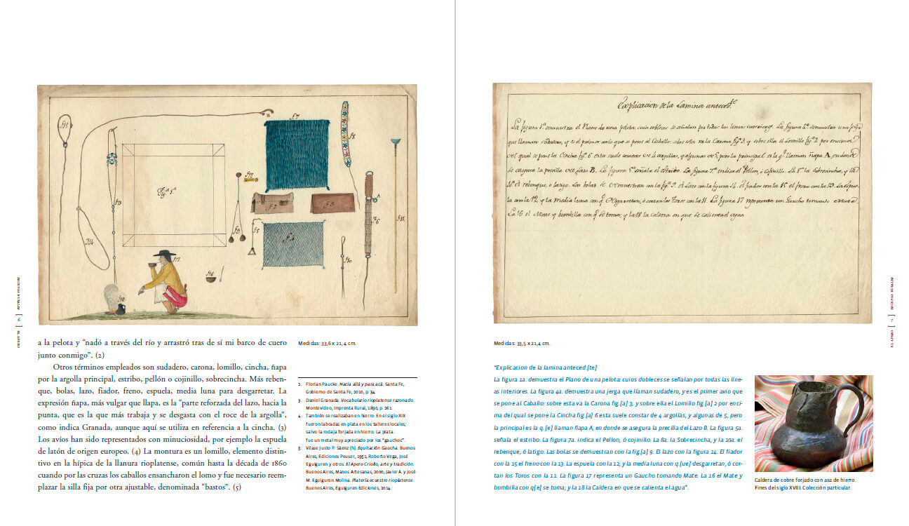 El libro contiene 200 páginas y fue ilustrado con buen parte del repertorio iconográfico de la época, así como con objetos antiguos, los que se observan representados en las distintas acuarelas, como aperos, espuelas, estribos y ponchos.