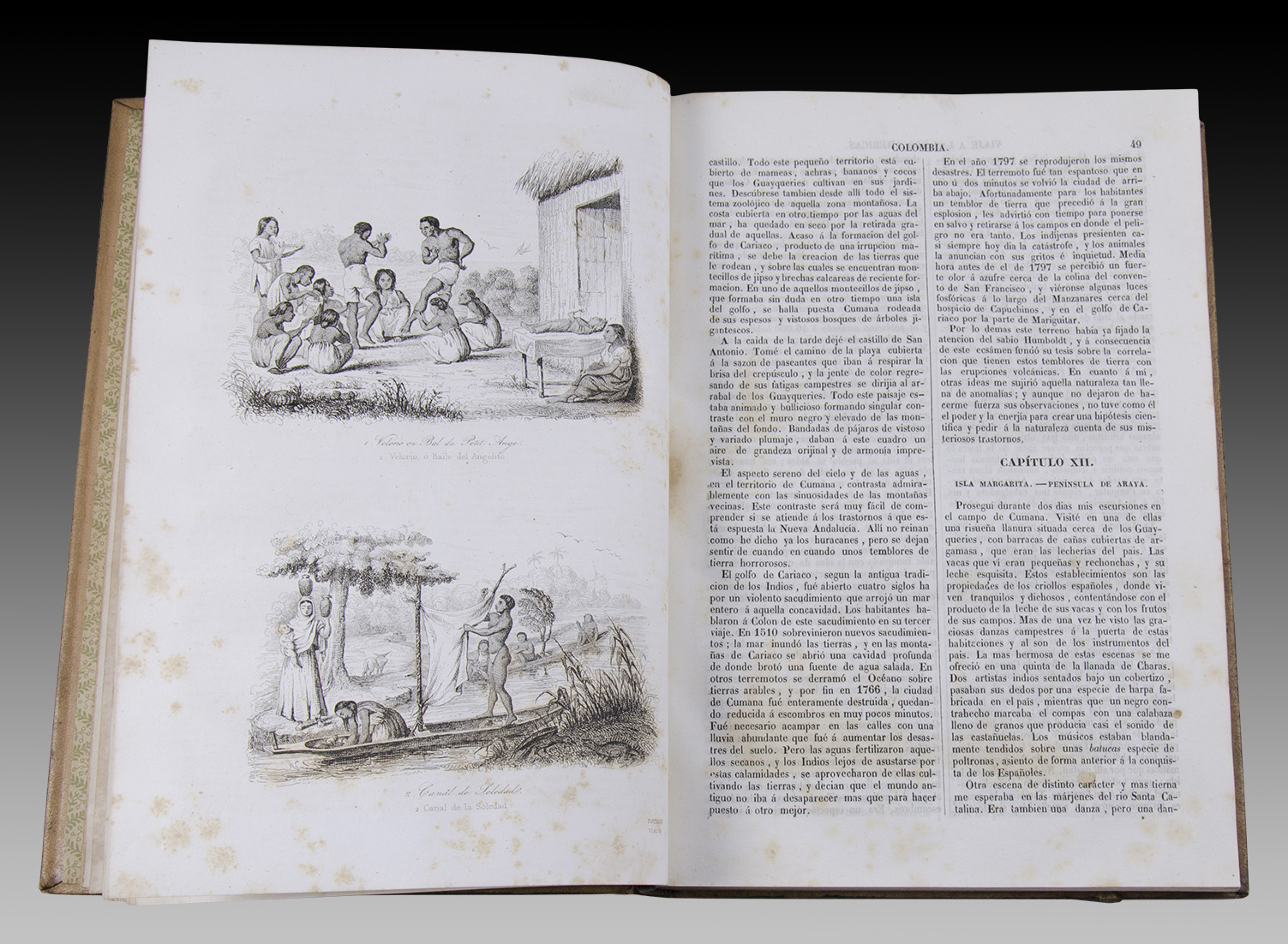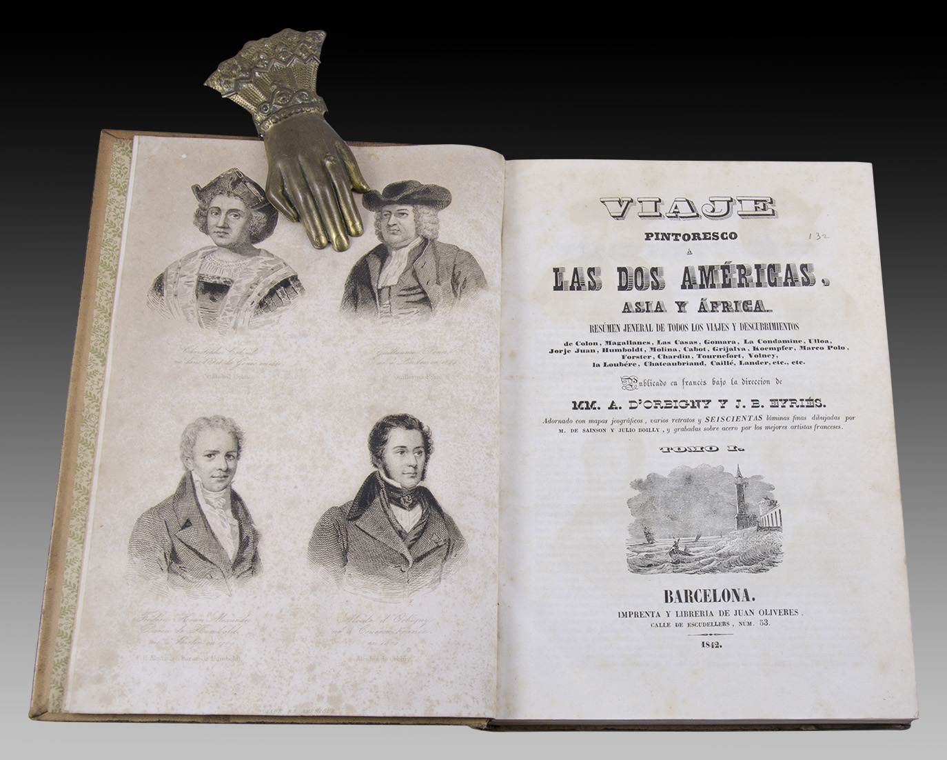 Viaje Pintoresco a Las Dos Américas, Asia y África. Resumen Jeneral (sic) De Todos Los Viajes y Descubrimientos de Colón, Magallanes, Las Casas, Gomara, La Condamine, Ulloa, Jorge Juan, Humbolt, Molina, Cabot, Grijalva, Koempfer, Marco Polo, Forster, etc. Imprenta y Librería De Juan Oliveres. Barcelona. 1842.